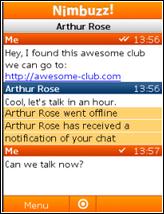 Nimbuzz is a multi-network (AIM, Facebook Chat, Google Talk, MSN Messenger, MySpace, Twitter, Yahoo) IM app. It was updated to version 1.93 last week. According to a post on the Nimbuzz blog the new features in this release are:
