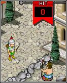 Use the joystick or mobile keypad (2,4,6,8) to move around the screen. Keep 5 / joystick pressed to throw with increasing power. Press 0 to select the barbarian, If softkeys don’t work use * (left softkey), # (right softkey.