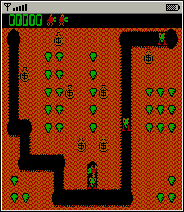Digger Mobile Edition is a faithful port of the 1983 IBM PC game Digger. The object of the game is to collect emeralds and gold from an abandoned mine while avoiding the Nobbins and Hobbins. Push bags of gold down mine shafts to break them open and retrieve the gold. Gold bags also crush Nobbins.