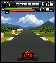Formula One motor racing game for non-touch phones with 176×220 screens. Also works on larger screens but the app doesn’t fill the screen.
