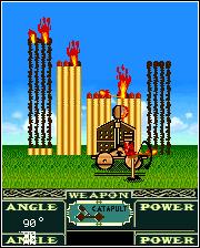 0 switches between catapult and archer; 2, 8 set angle; 5 fire; * menu; # pause