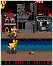 Can you make dictators and terrorists funny? The politically inspired game tries. Your job is to keep “Kim Il Kong”, “MushaRuffi” and “YoMama” on the run, jumping hurdles and tossing a nuclear bomb back and forth like a hot potato while avoiding their arch enemy, “Bush”. The characters are obvious caricatures of Kim Il Jong, Pakistan’s ex-president Musharraf, Osama bin Laden and George “Dubya” Bush.